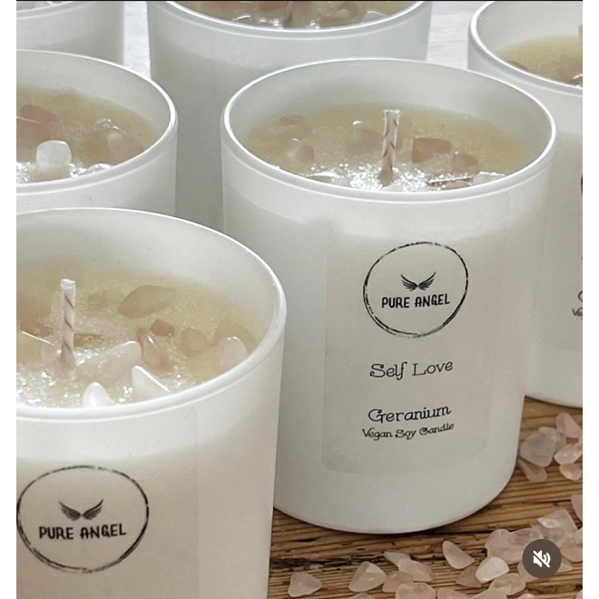 Promote self-love and healing with our Self Love candle, infused with premium Geranium oil and topped with Rose Quartz crystals. This combination is designed to enhance your self-care routine and create a soothing atmosphere.